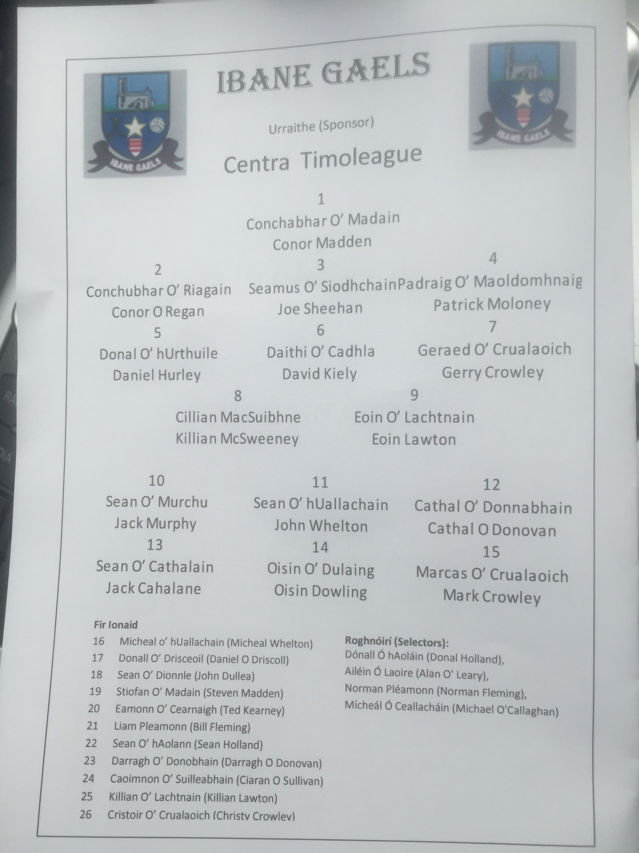 Ibane now progress to the County Final against Clyda Rovers provisionally fixed for Saturday the 6th of August.