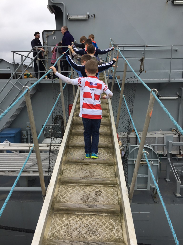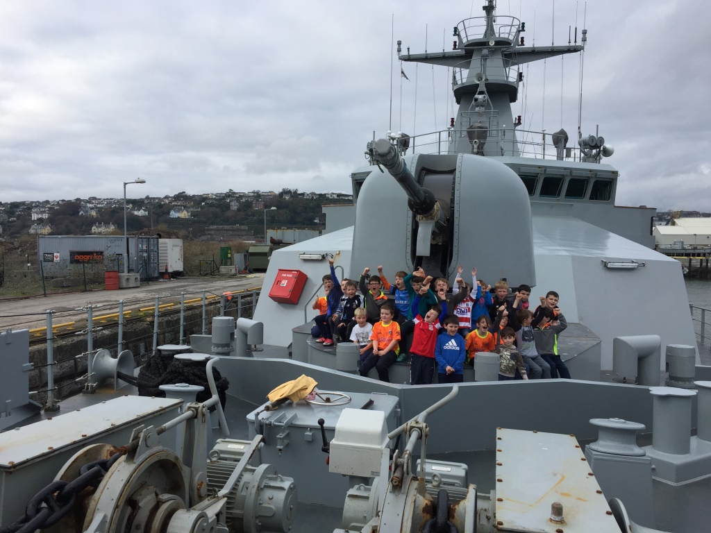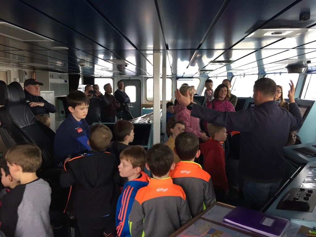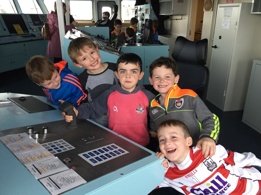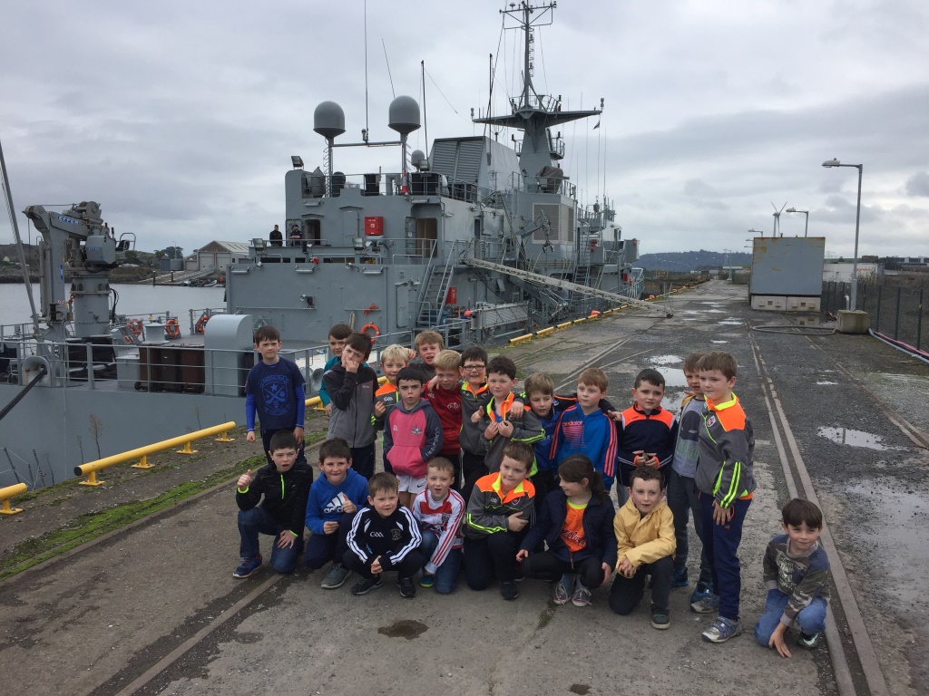 Last Saturday afternoon, the Barryroe Under 8 team were privileged to be taken on a tour of the Naval Base at Haulbowline Island by team coach and Butlerstown native Lt Cdr David Fleming of the Irish Naval Service. David has recently taken command of the navy’s newest vessel, the L.E. William Butler Yeats and after first treating the boys to lunch, he took them on a fascinating walking tour of the naval base before bringing them aboard his new ship. Considering it was recently built at a cost of over €70 million and had on-board 1x76mm cannon and numerous other armaments this could have been a risky manoeuvre! However the boys behaviour was impeccable (it helped that the cannon’s firing button didn’t appear to be turned on) and they had a fantastic time visiting the ship’s bridge, gym, kitchen, engine room, captain’s cabin as well as seeing up close the enormous cannon up on deck. It was a brilliant way to round off their season and a very special word of thanks must go to David for organising this visit. Barryroe GAA Club would also like to wish him every success in his new role.