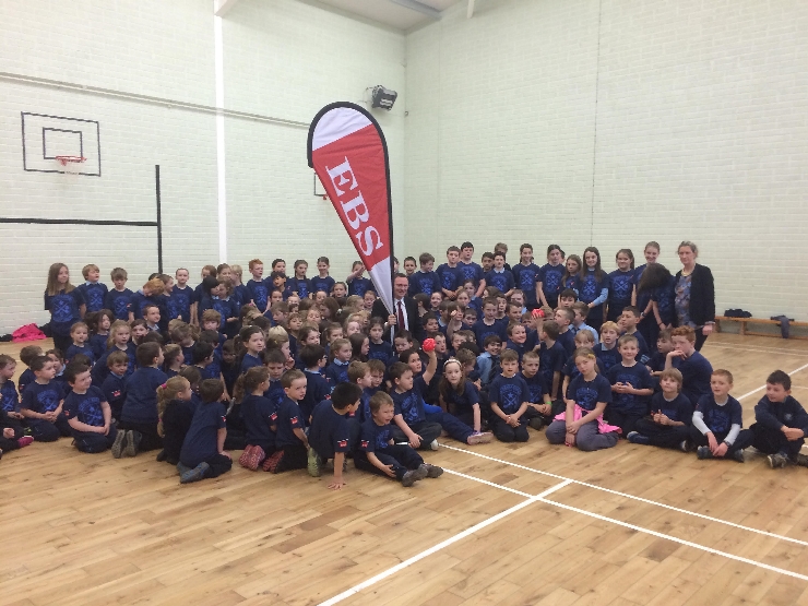 John O'Sullivan manager EBS Clonakilty meets 180 school children and 15 teachers and staff at Barryroe NS to promote EBS Clonakilty in community.