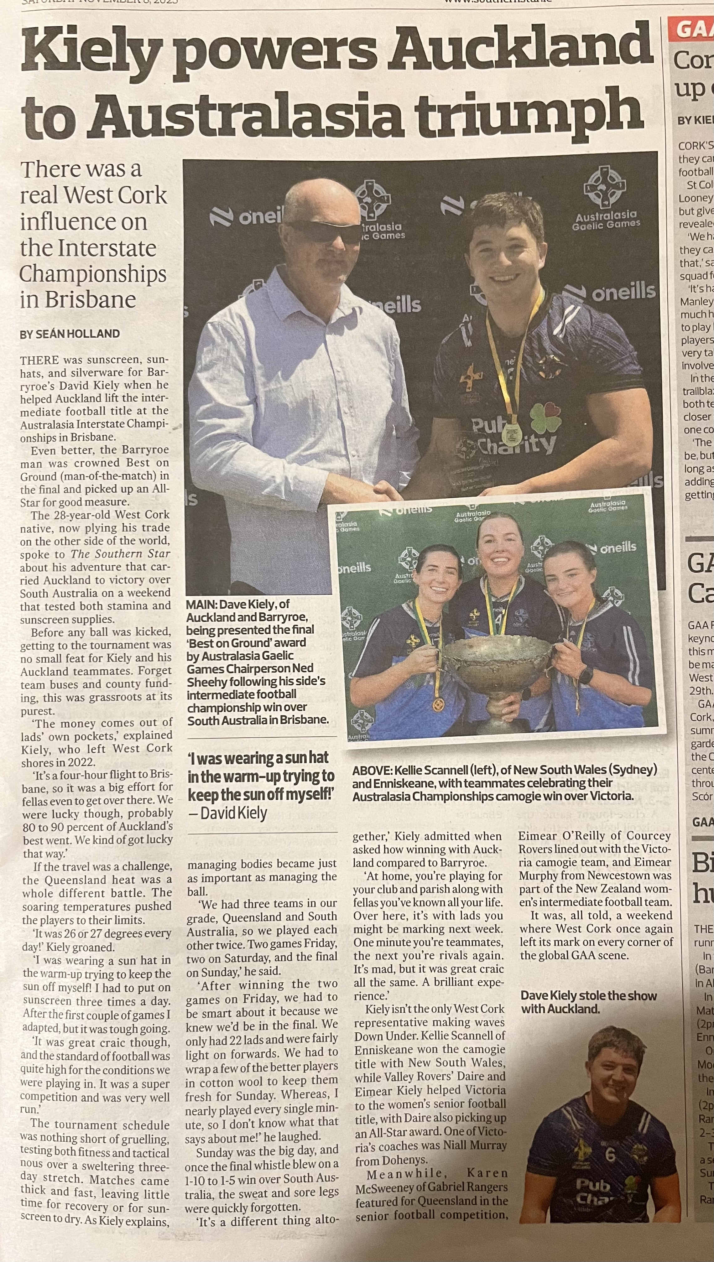 Congrats to David Kiely who starred for Auckland in the Interstate Championships recently held in Brisbane, Australia.