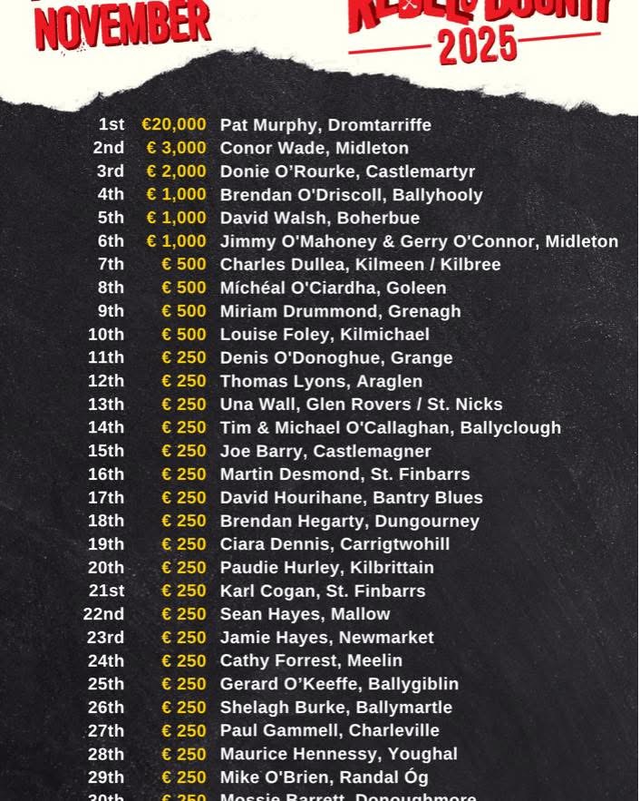 Thank you to all who supported Barryroe GAA by purchasing a ticket for 2025. Best of luck to all Barryroe GAA tickets for the remaining draws.