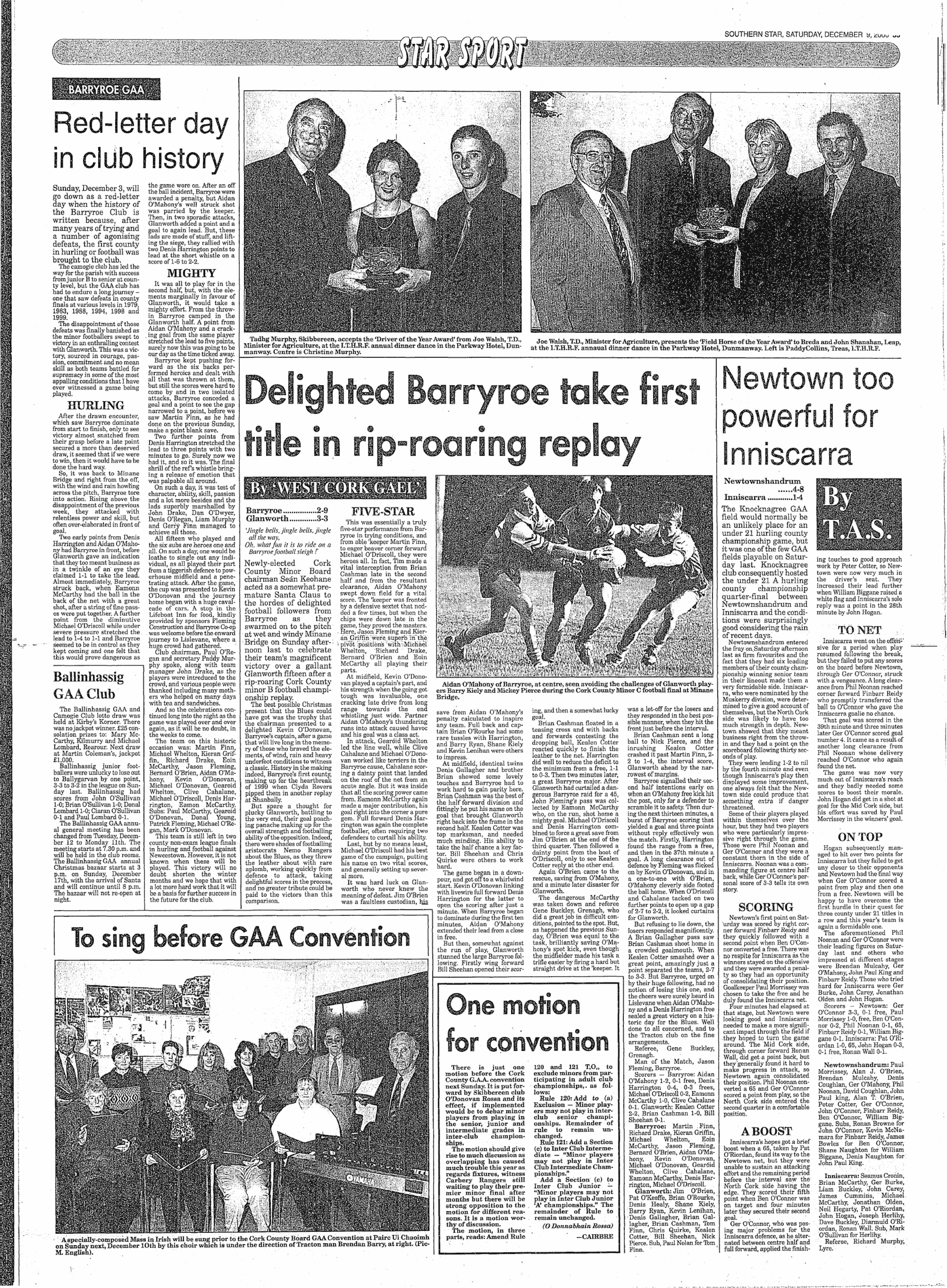 #onthisdate twenty-five years ago, the Barryroe Minor footballers claimed the county title for the first time on Sunday the 3rd December in Minane Bridge in a replay, where they defeated Glanworth on a score of 2-09 to 3-03.