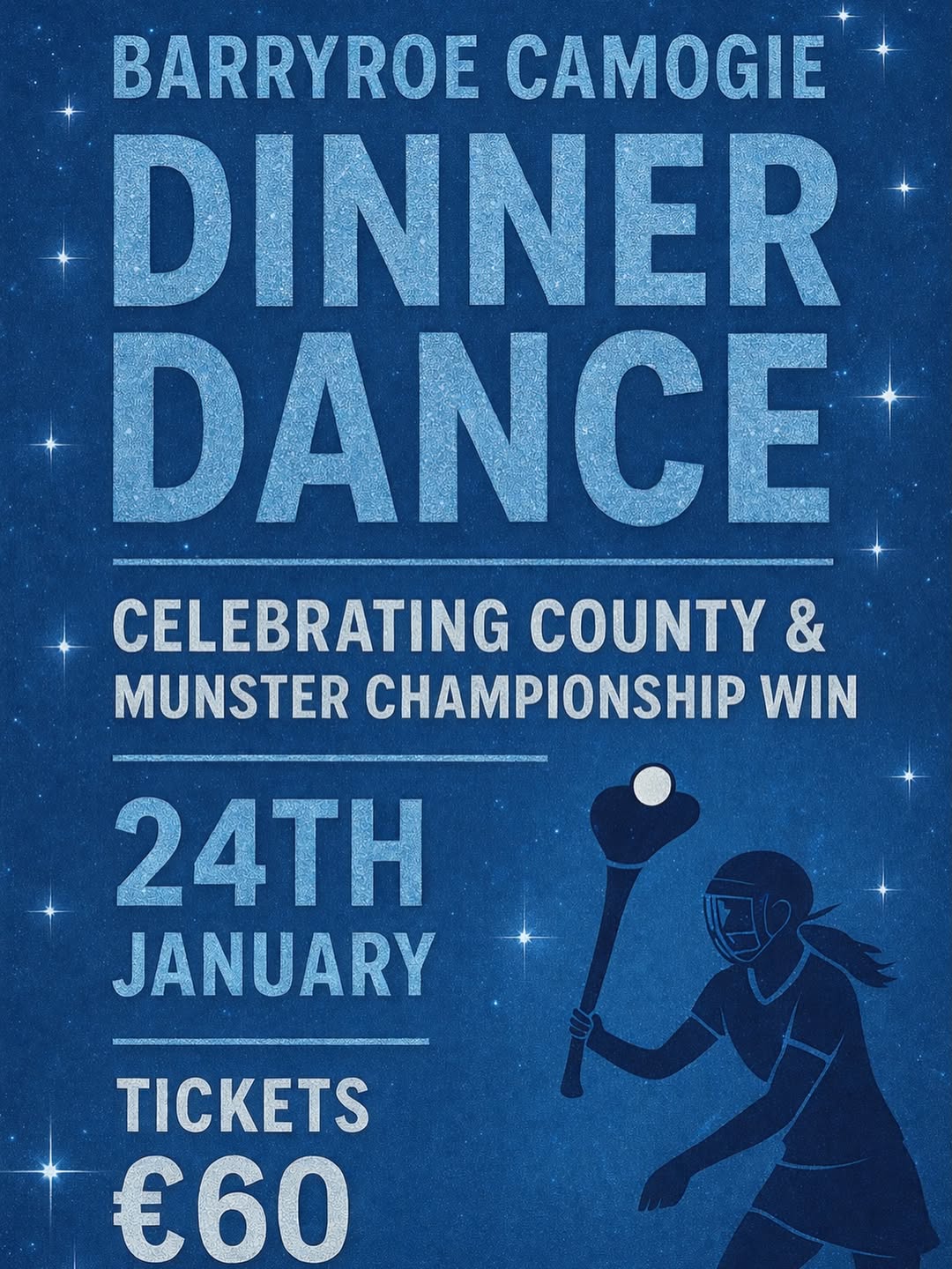 Barryroe Camogie Club are delighted to invite you all to our Camogie club Dinner Dance 2026 to celebrate the successes of 2025.