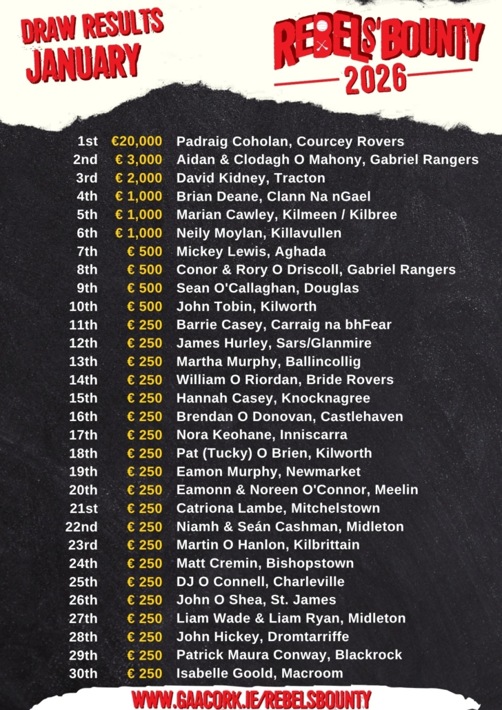 Thank you to all who supported Barryroe GAA by purchasing a ticket for 2026. Best of luck to all Barryroe GAA tickets for the remaining draws.