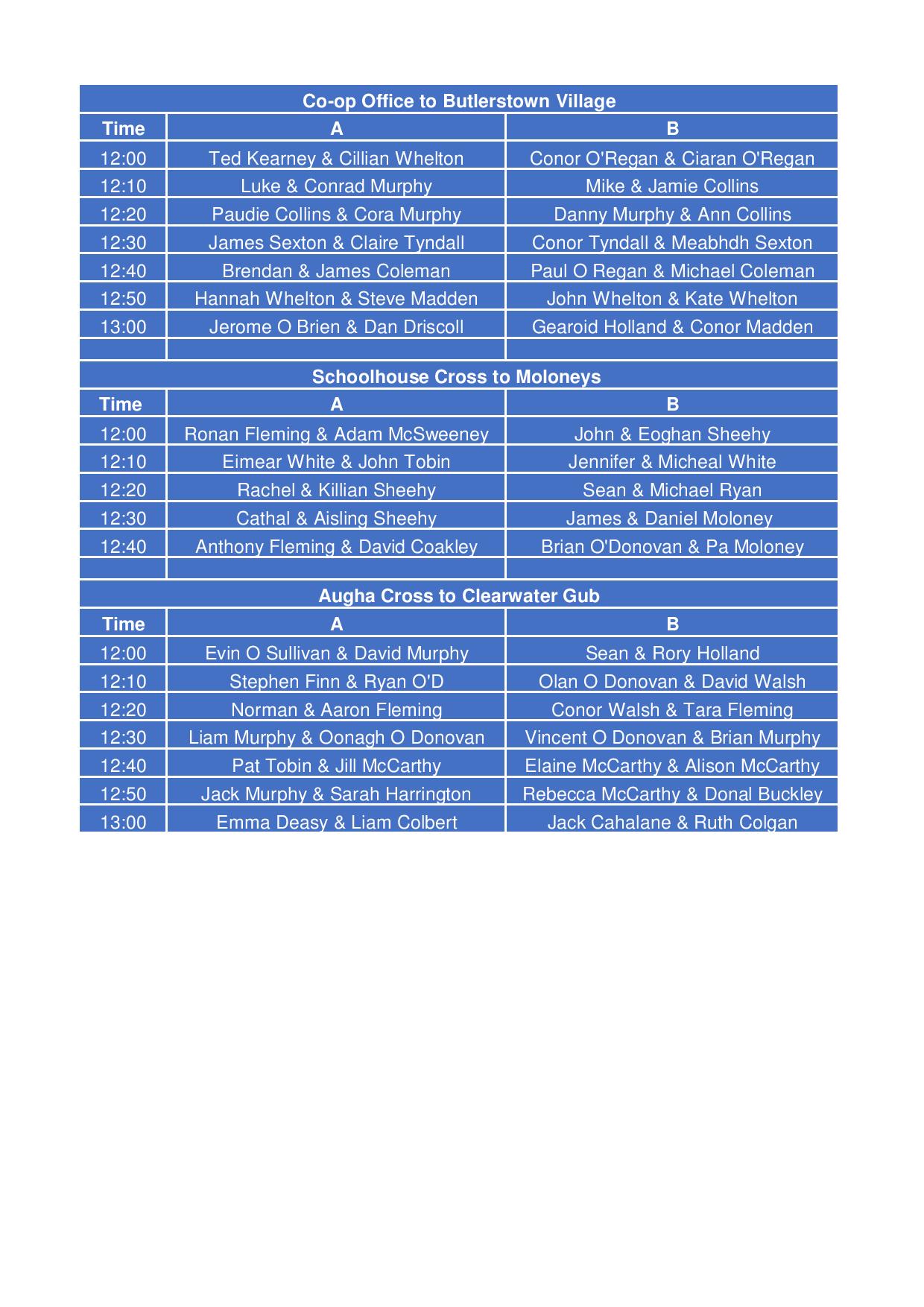 - Final scores to be submitted via text to Conor O'Regan 086 264 6463
